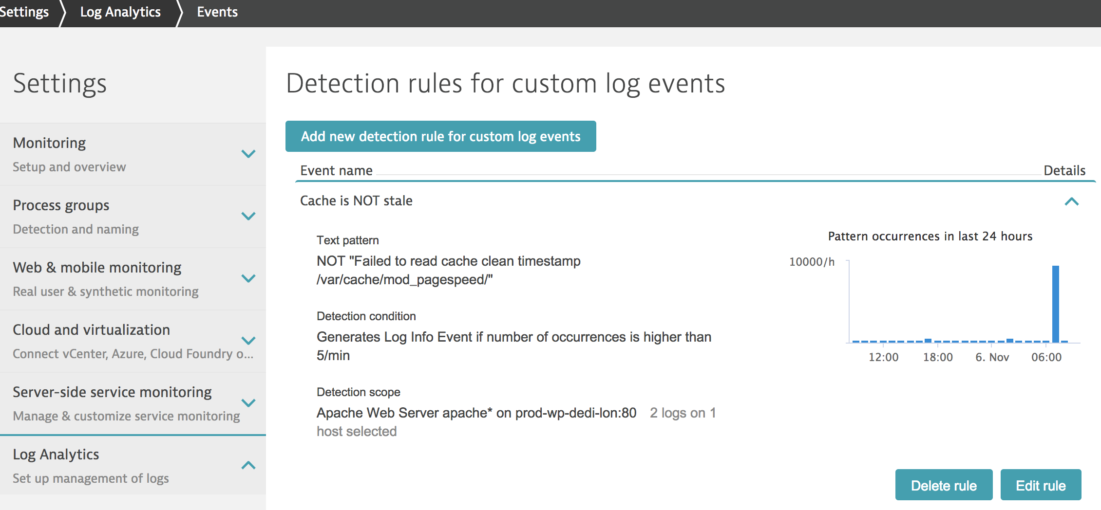 Typically, you will be using log event rules to identify events. Perhaps a solution for you is to define a log event and track this? (/#settings/logevents) This provides the pattern occurrences over time like below: