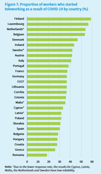 Figure 7 has a quite interesting view of which European countries had a bigger implementation of teleworking.