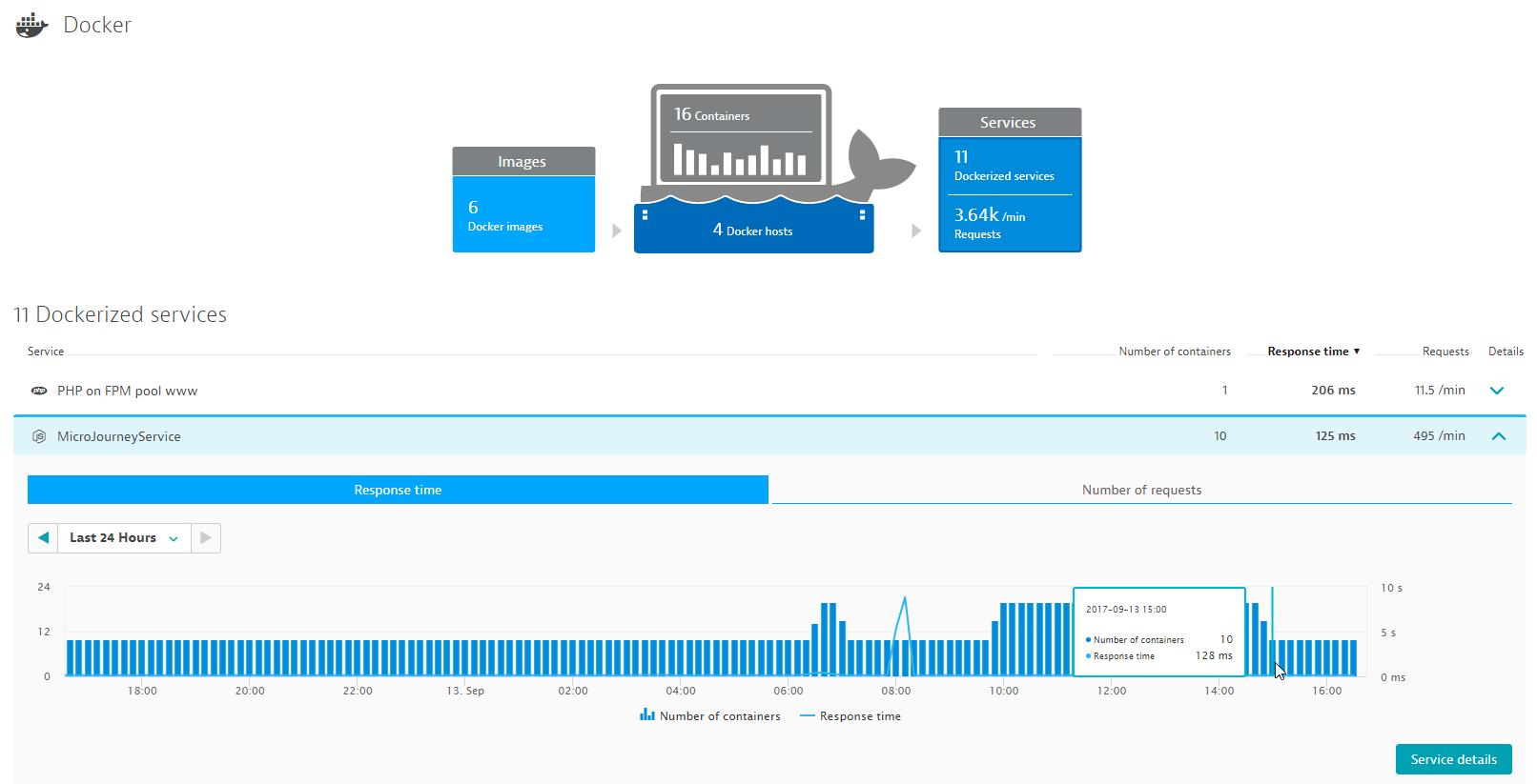 As also the service response time is taken into context - you can easily see if there is a negative effect to a services when a container is stopped.