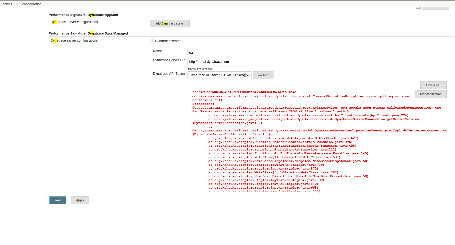 de.tsystems.mms.apm.performancesignature.dynatracesaas.rest.CommandExecutionException: error getting version of server: null