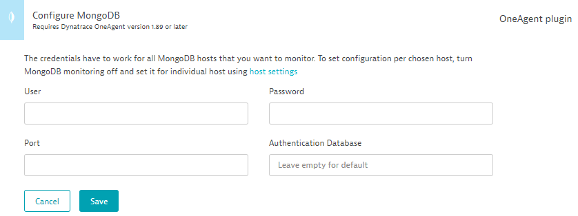 Do you have a MongoDB instance running that you will like to feed data into Dynatrace from? Dynatrace needs the credentials for this instance to pull the metrics.