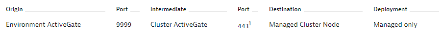 As I mentioned earlier the Environment ActiveGate talks to the Cluster ActiveGate on port 9999 (but you do not have the Cluster ActiveGate).