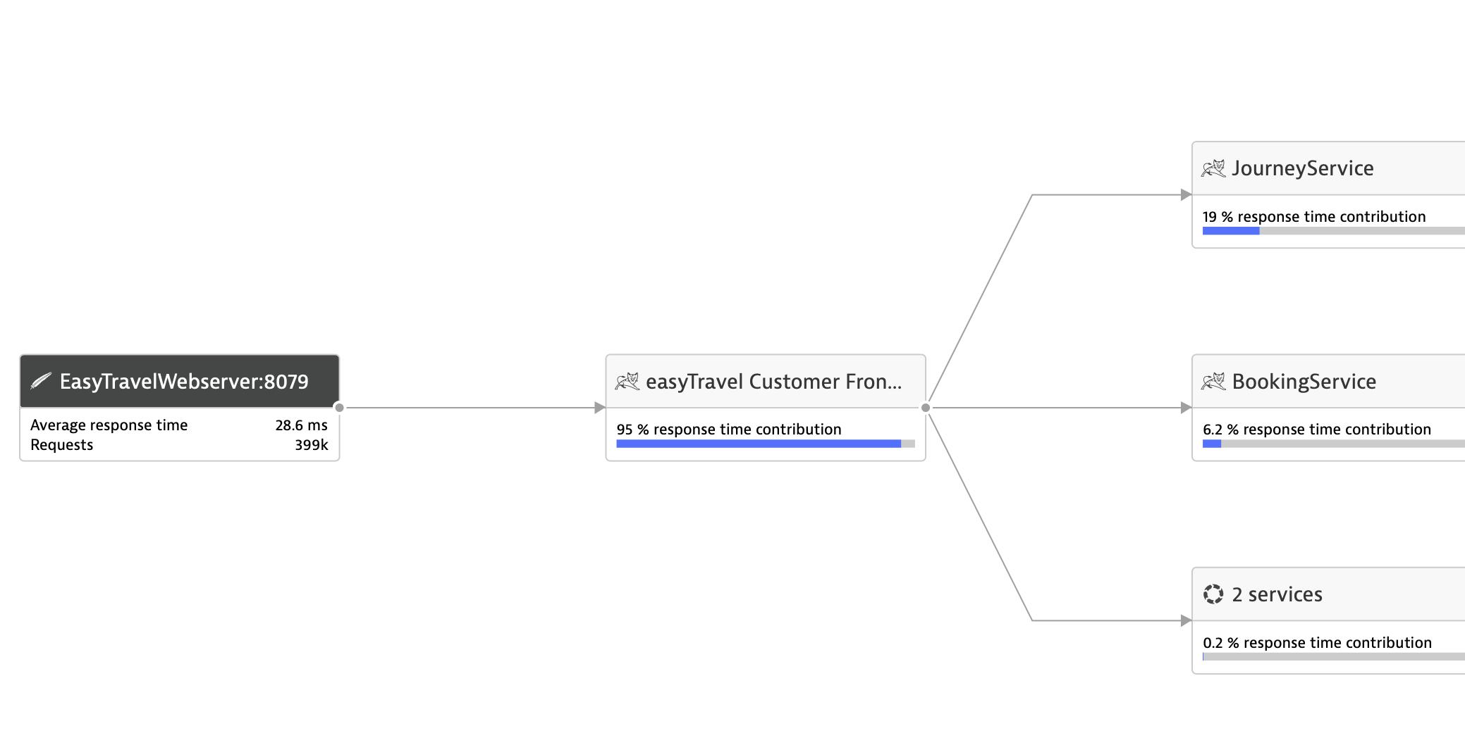 A) 1. Our Setup • Our application installed on 3 nodes: N1, N2, N3 • We have 3 components: C1, C2, C3 installed on N1, N2 and N3 respectively • Any request flows from C1 to C2 to C3 and then back in the reverse order • Dynatrace agents are installed on N1 and N2 (not on N3) • The time taken by C1, C2 and C3 are T1, T2 and T3 respectively. • The roundtrip time reported for a request is T1 + T2 + T3 Our Need • We want to know if there is any way in dynatrace to exclude T3. So the roundtrip for a request should be reported as T1 + T2 only and exclude T3.