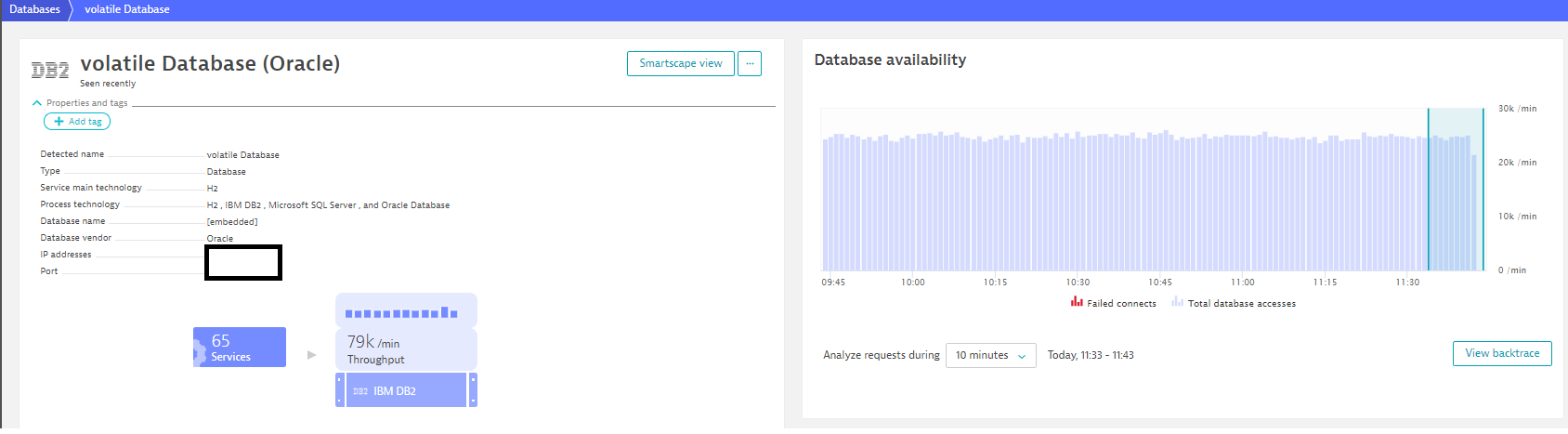 I've got a weird situation where a lot of applications calls to databases are being grouped into a single database service called Volatile Database where I'm unable to view any details of the database calls.