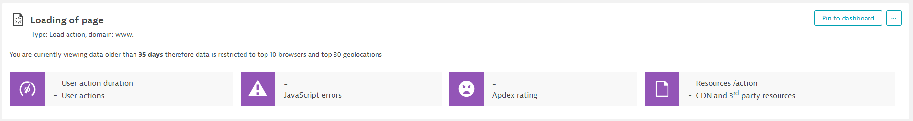 As you can see in the below screenshot, there is no performance data available for the key user action even for the last 30 minutes.